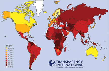 Le mappe dell’organizzazione “Transparency International”, che si occupa di valutare la corruzione nei diversi Paesi nel mondo, ci collocano in una posizione alquanto scomoda, affiancando l’Italia alla media dei Paesi africani, asiatici e sudamericani.